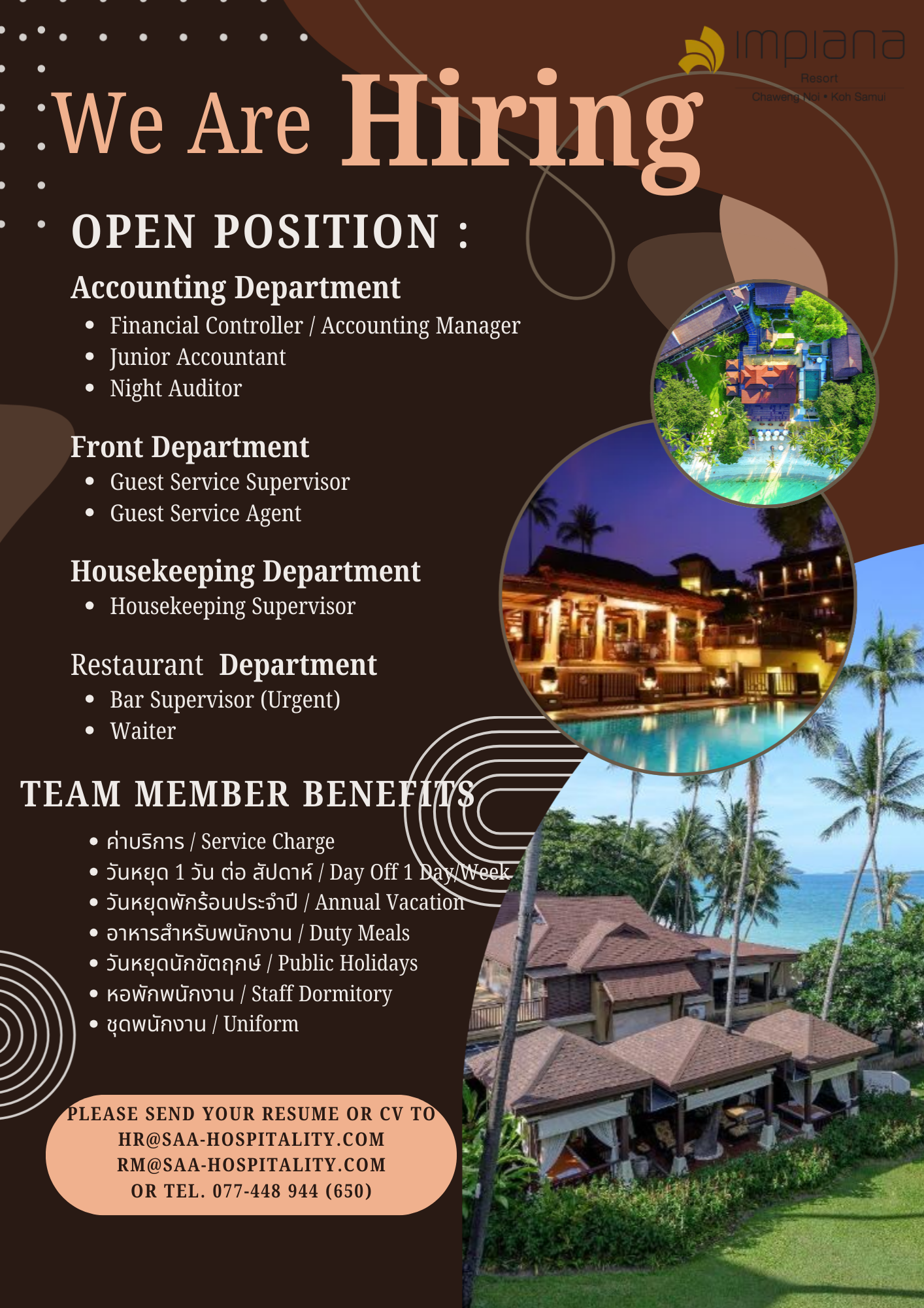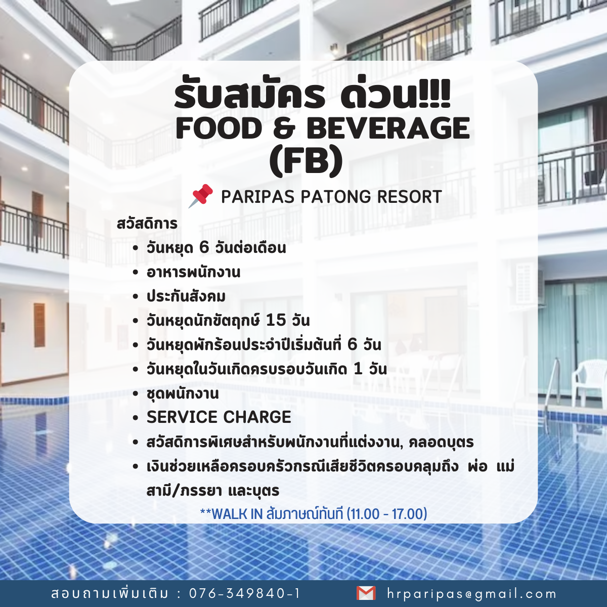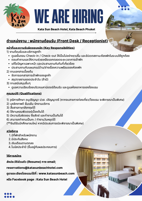 กรุณาส่งประวัติส่วนตัวมาที่ [email protected] หากท่านผ่านการพิจารณาเราจะติดต่อไปเพื่อนัดสัมภาษณ์