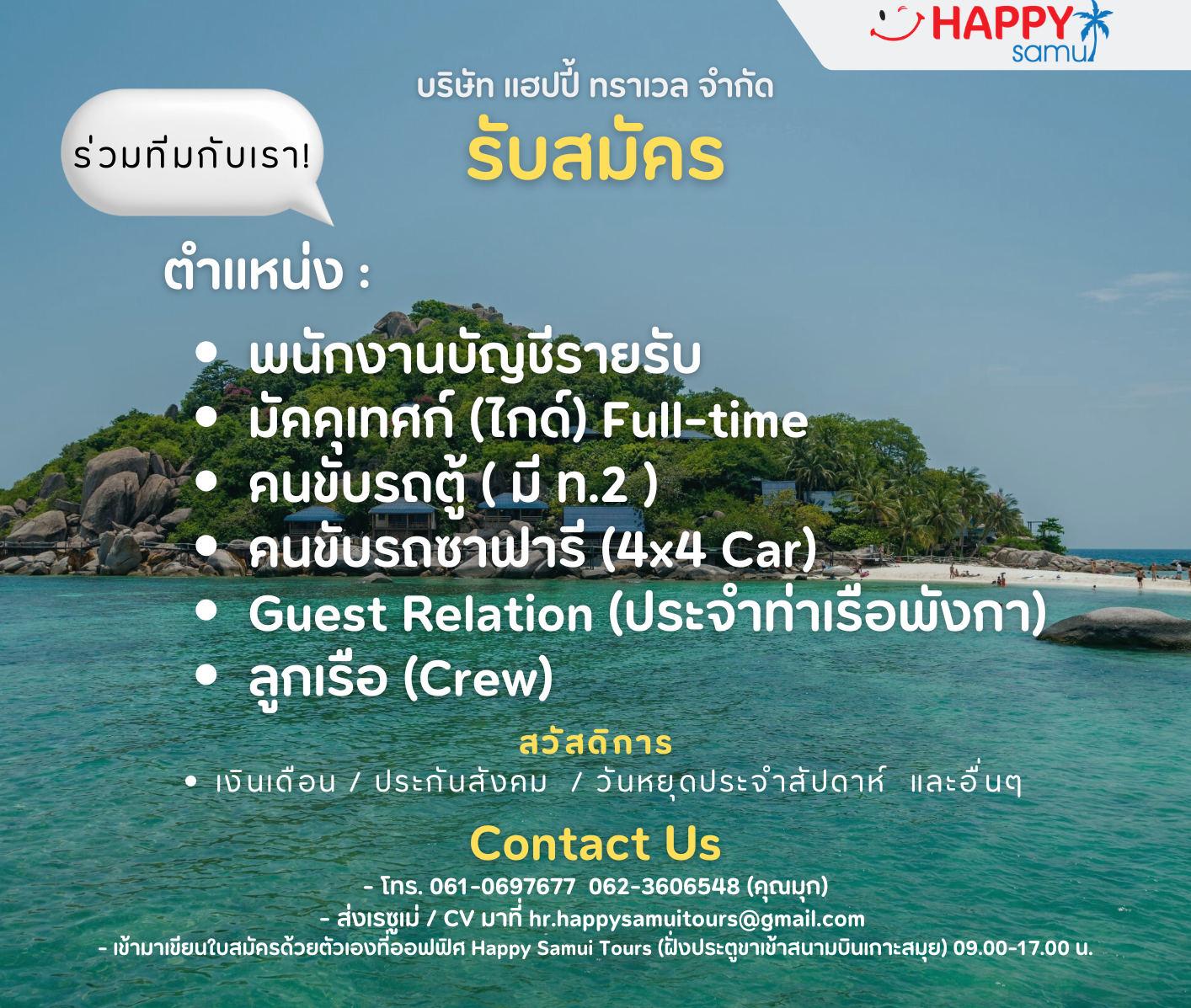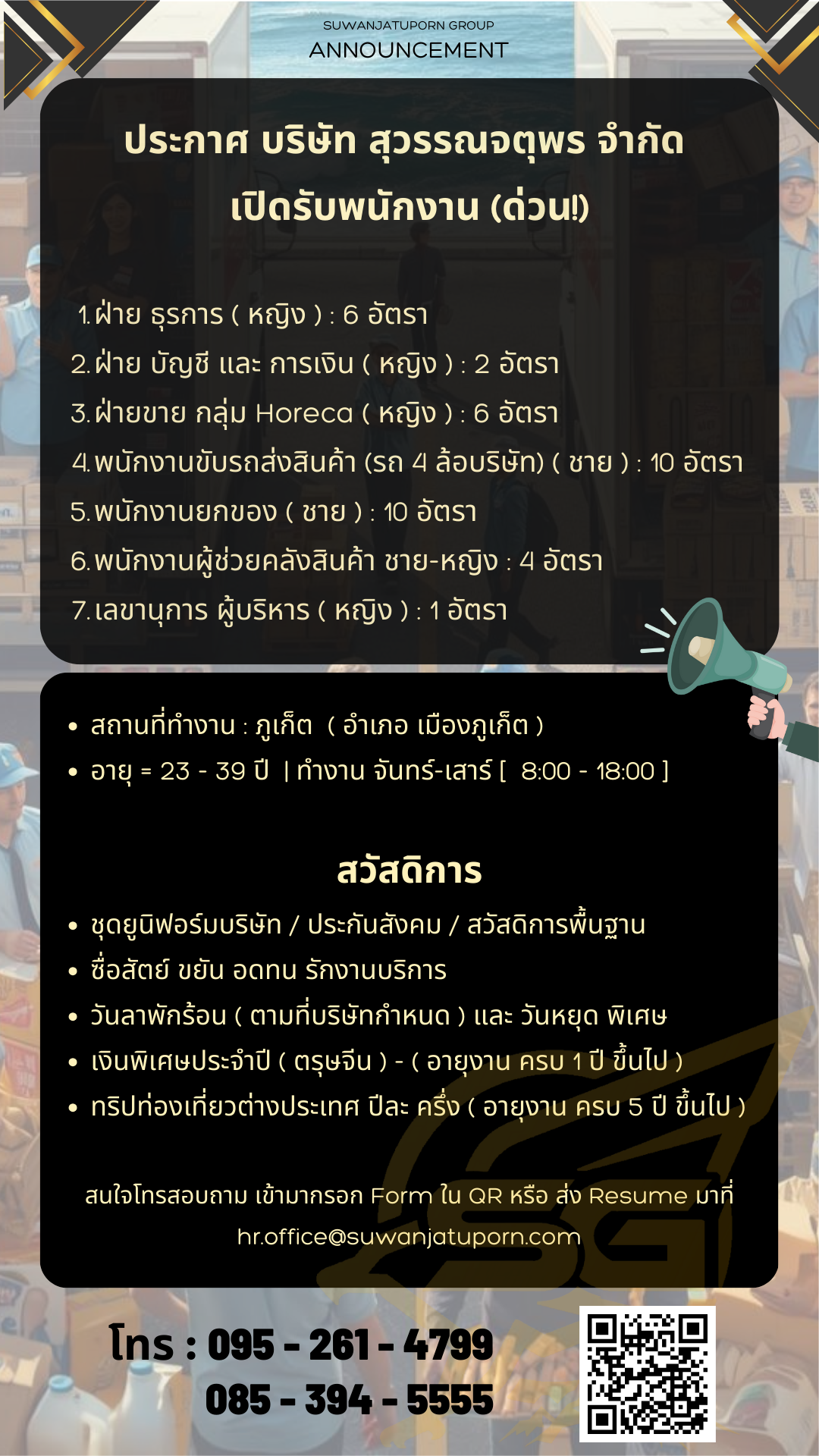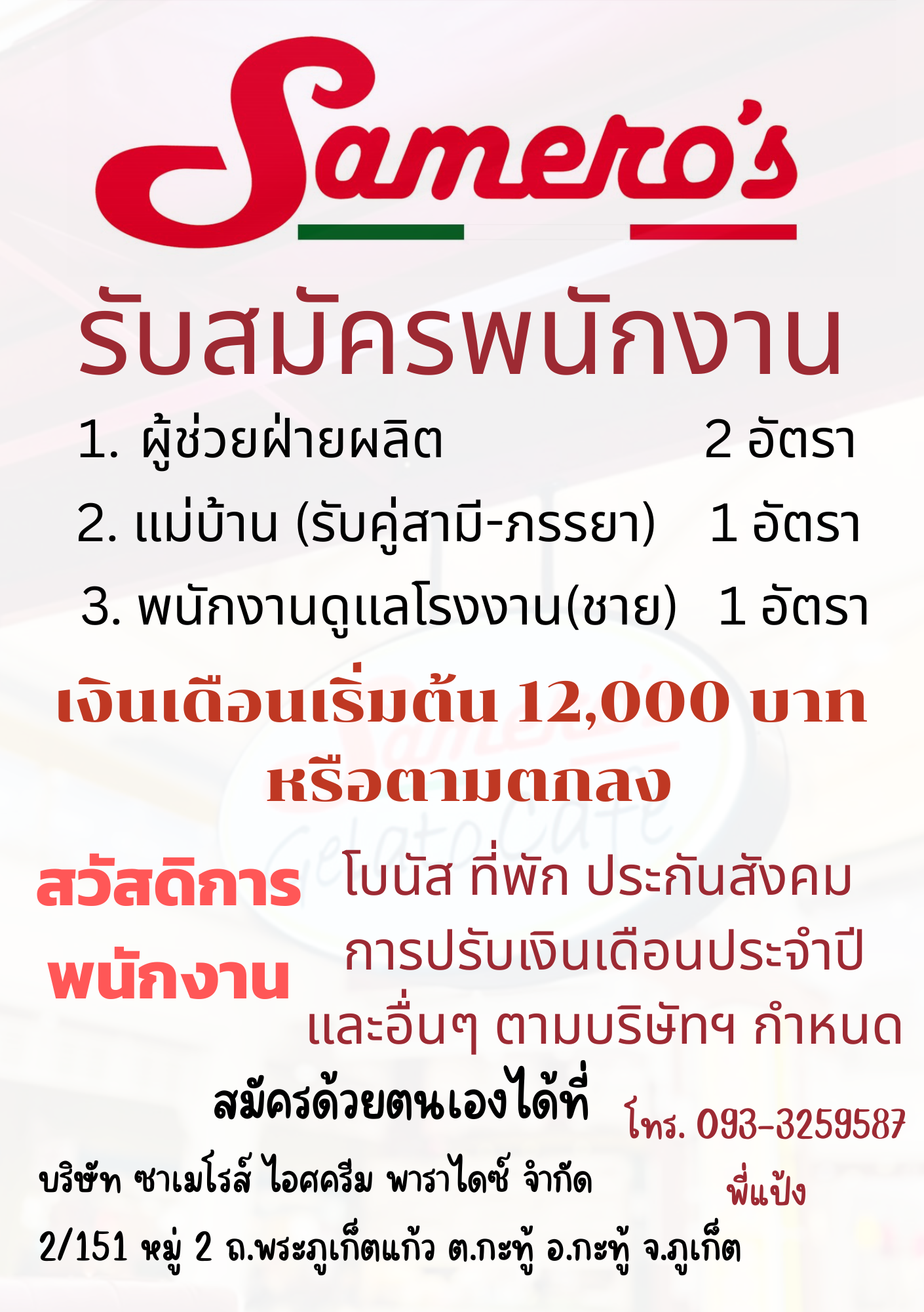 เปิดรับสมัครงานหลายอัตรา !! สนใจสมัครงานโทร 088-7660331 หรือ [email protected]