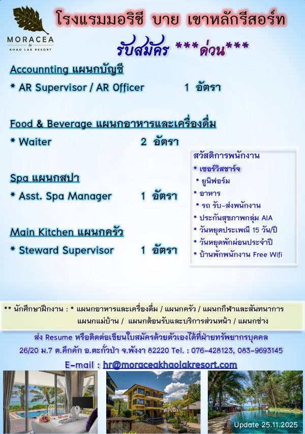 ส่งประวัติส่วนตัวพร้อมรูปถ่ายปัจจุบันเข้ามาที่ [email protected] *ยินดีรับผู้ไม่มีประสบการณ์*