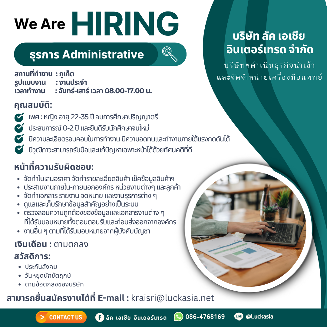 สนใจร่วมงานกับเรา สามารถส่ง Resume มาที่ [email protected] ยินดีต้อนรับทุกท่านค่ะ