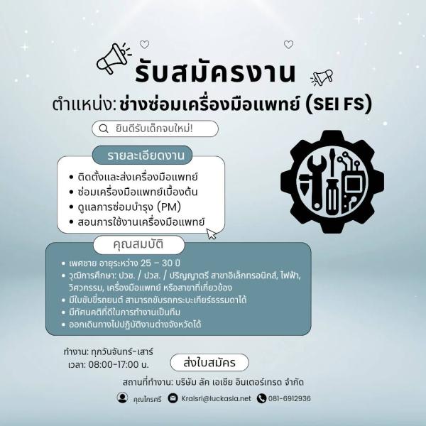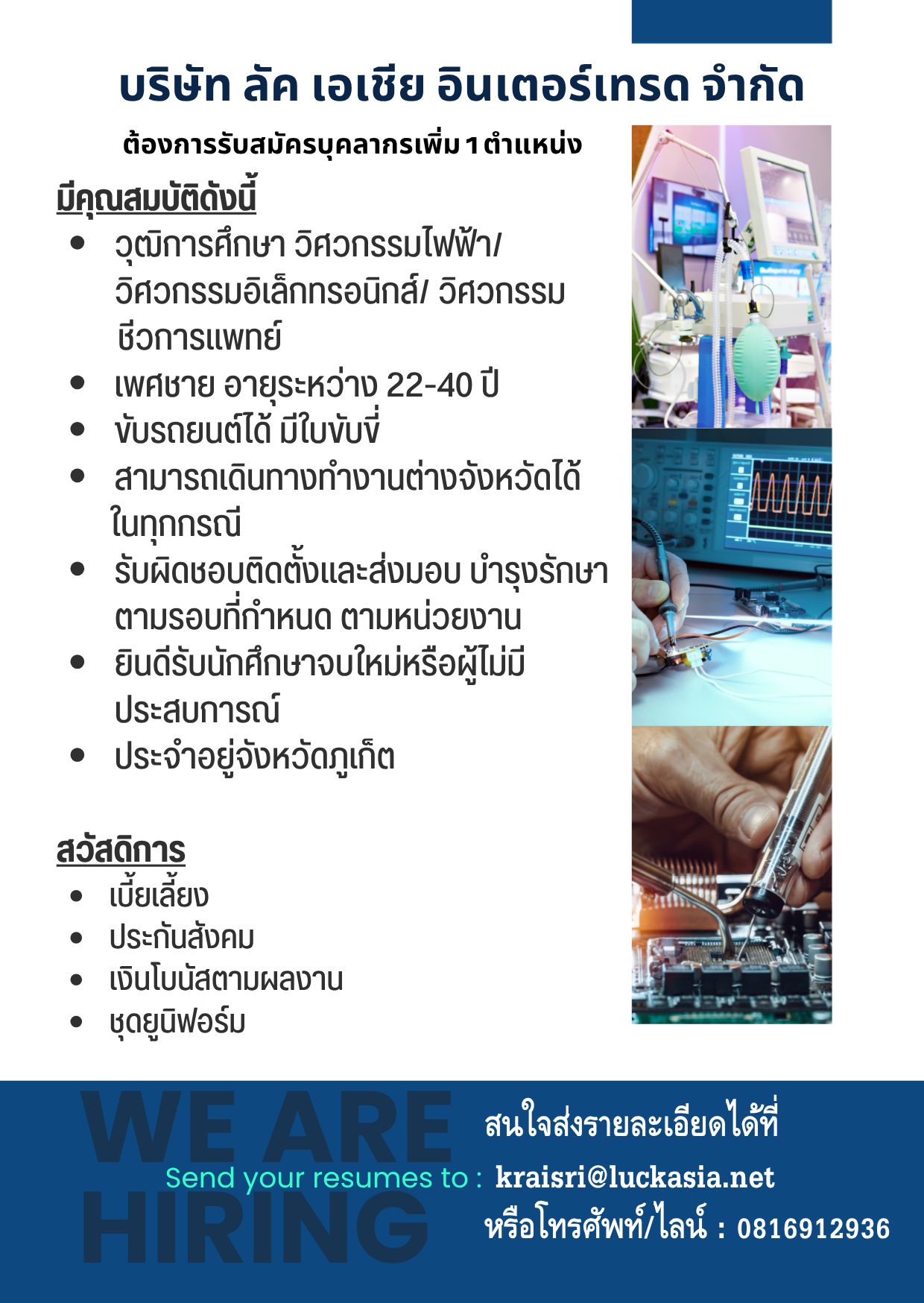 กรุณาส่งประวัติส่วนตัวมาที่ [email protected] หากท่านผ่านการพิจารณาเราจะติดต่อไปเพื่อนัดสัมภาษณ์