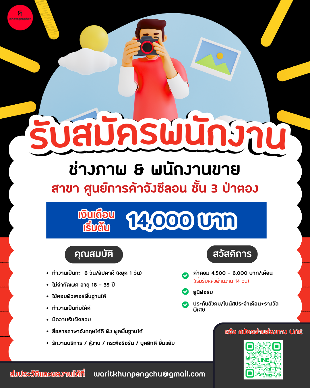 - ช่างภาพ&พนักงานขาย (2) Urgent