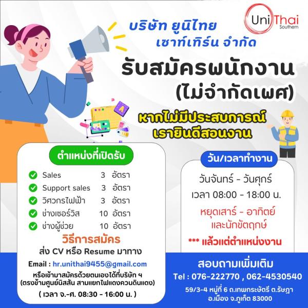 กรุณาส่งประวัติส่วนตัวมาที่ [email protected] หากท่านผ่านการพิจารณาเราจะติดต่อไปเพื่อนัดสัมภาษณ์