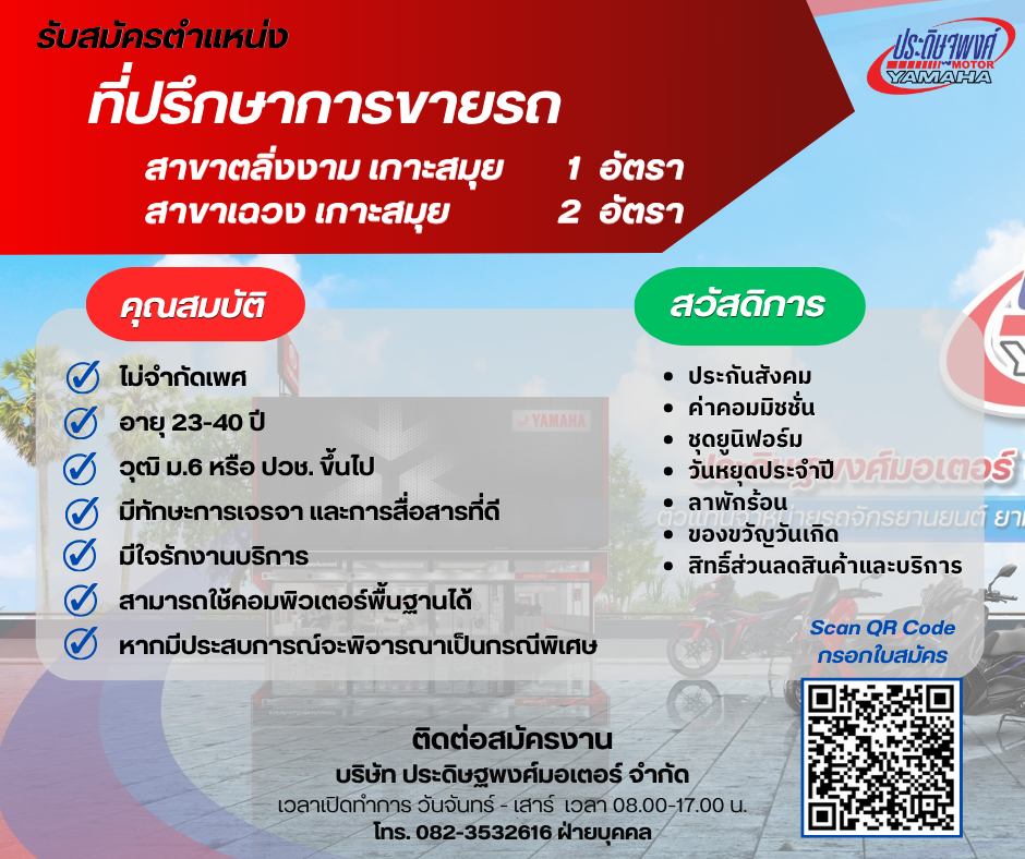 กรุณาส่งประวัติส่วนตัวมาที่ [email protected] หากท่านผ่านการพิจารณาเราจะติดต่อไปเพื่อนัดสัมภาษณ์