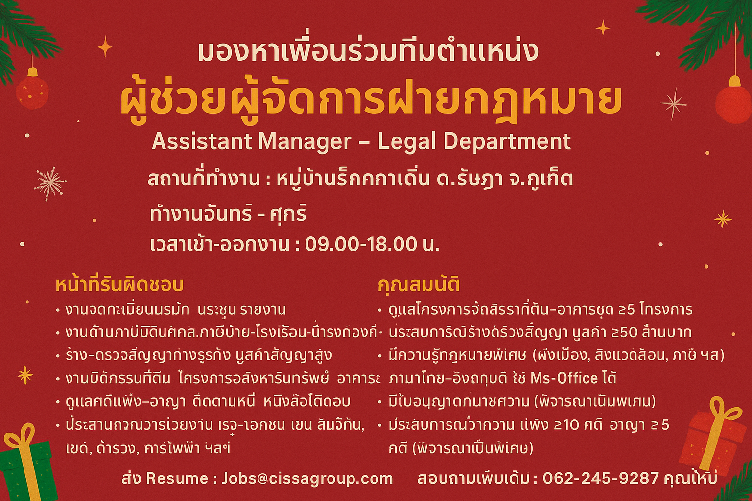 กรุณาส่งประวัติส่วนตัวมาที่ [email protected] หากท่านผ่านการพิจารณาเราจะติดต่อไปเพื่อนัดสัมภาษณ์