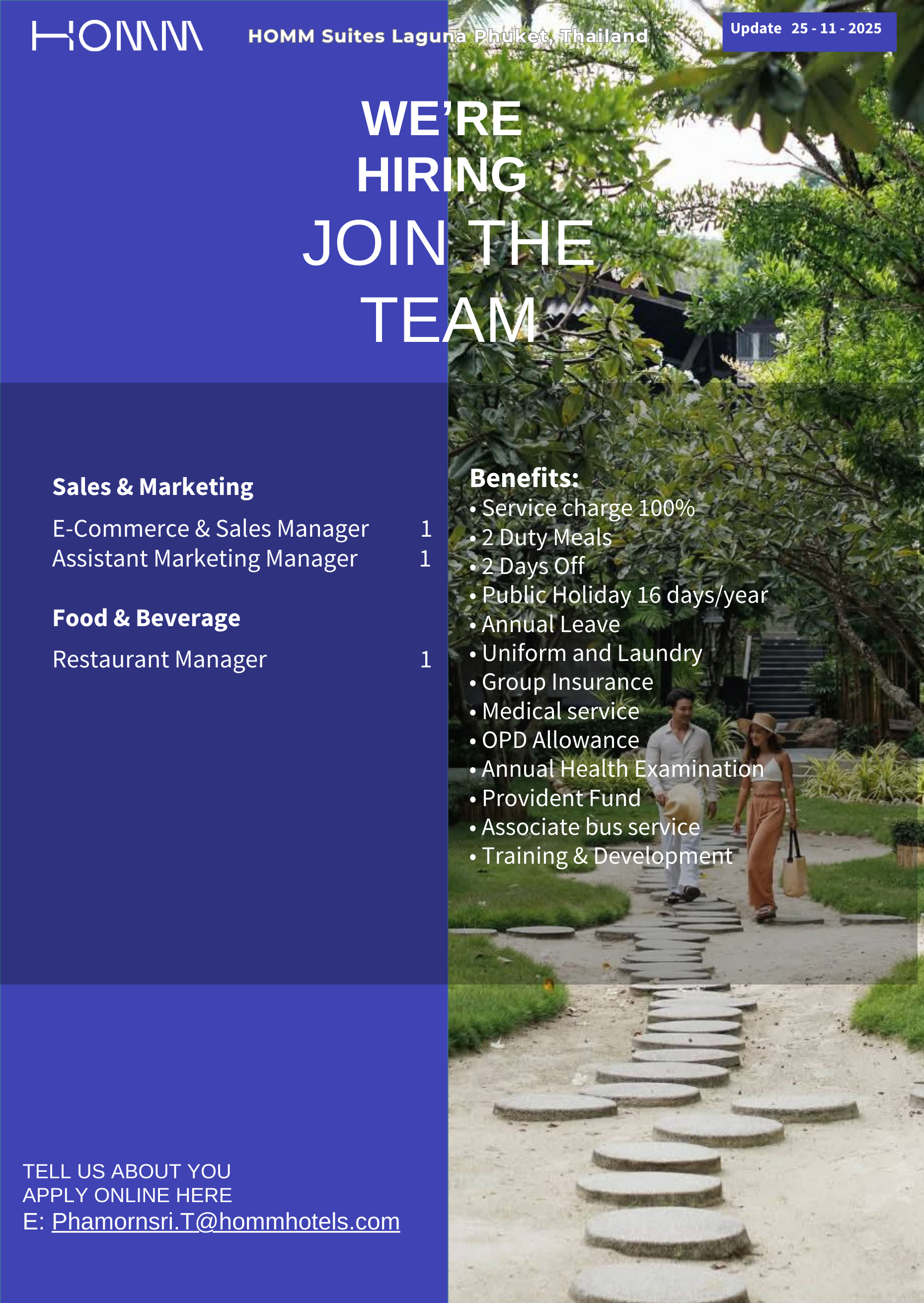 สนใจร่วมงานกับเรา สามารถส่ง Resume มาที่ [email protected] ยินดีต้อนรับทุกท่านค่ะ