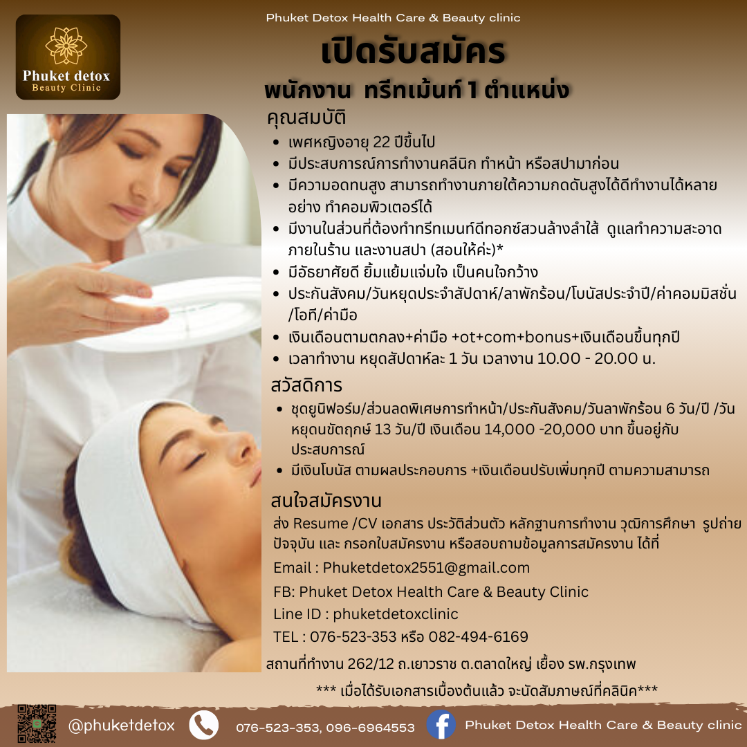 พนักงานทรีทเมนท์1ตำแหน่ง