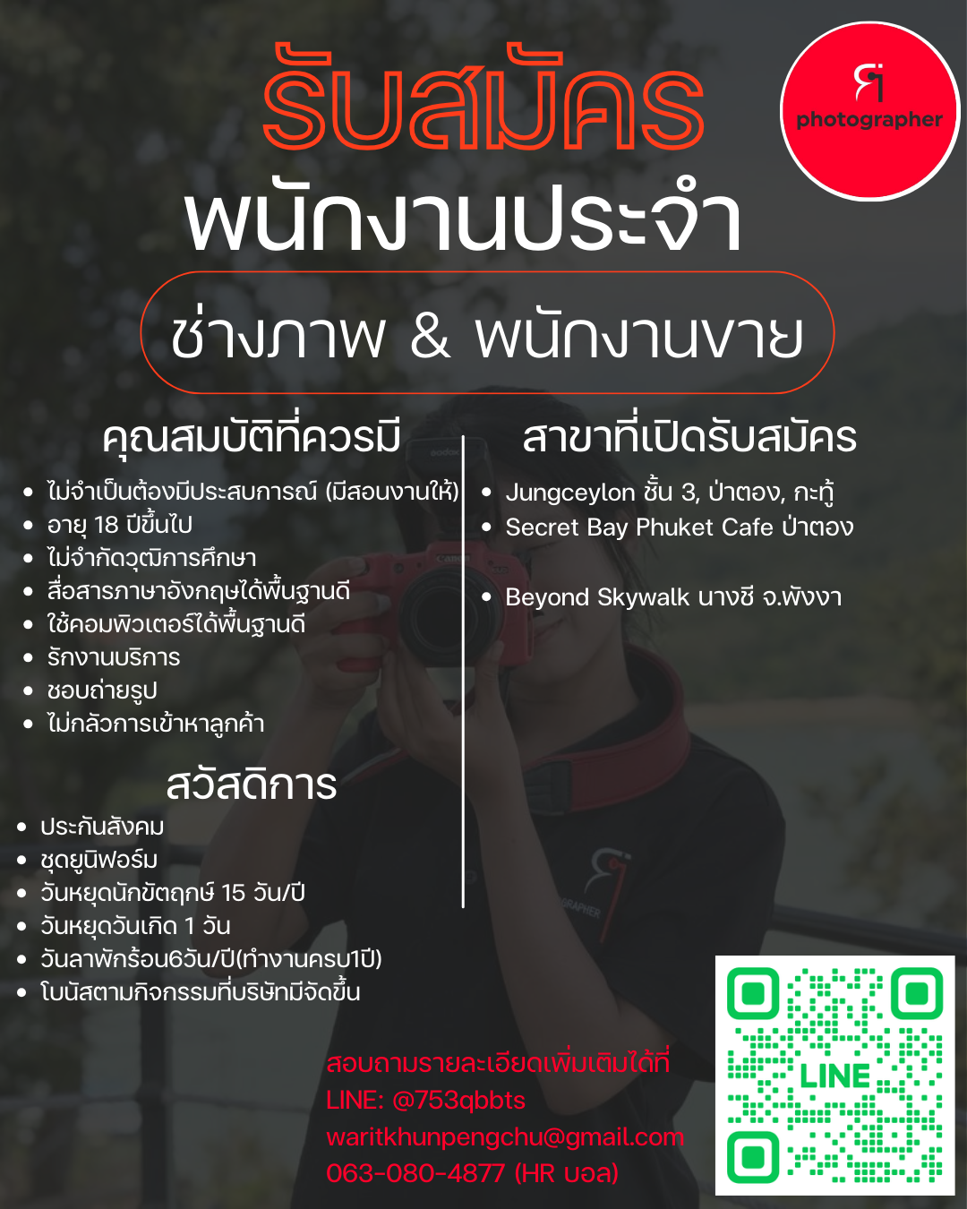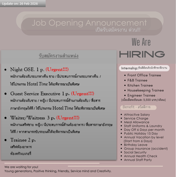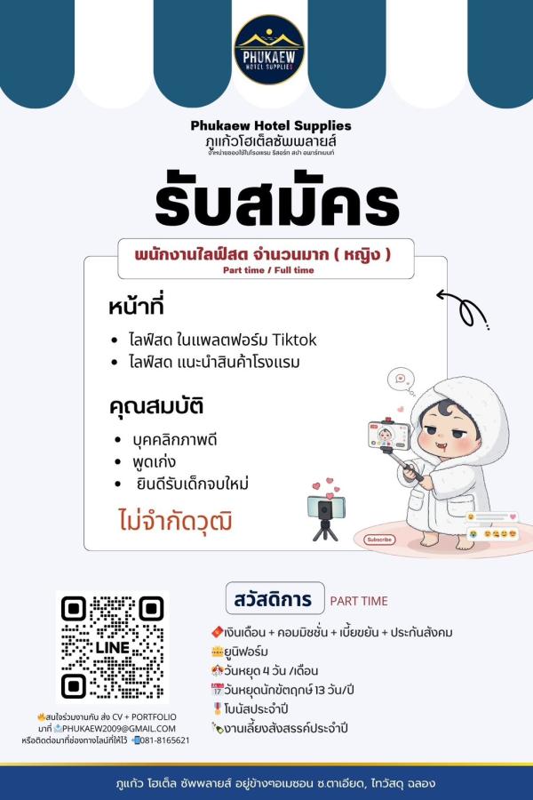 ส่งประวัติส่วนตัวพร้อมรูปถ่ายปัจจุบันเข้ามาที่ [email protected] *ยินดีรับผู้ไม่มีประสบการณ์*