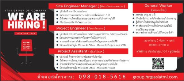 - เจ้าหน้าที่ประสานงานช่าง (1) Urgent