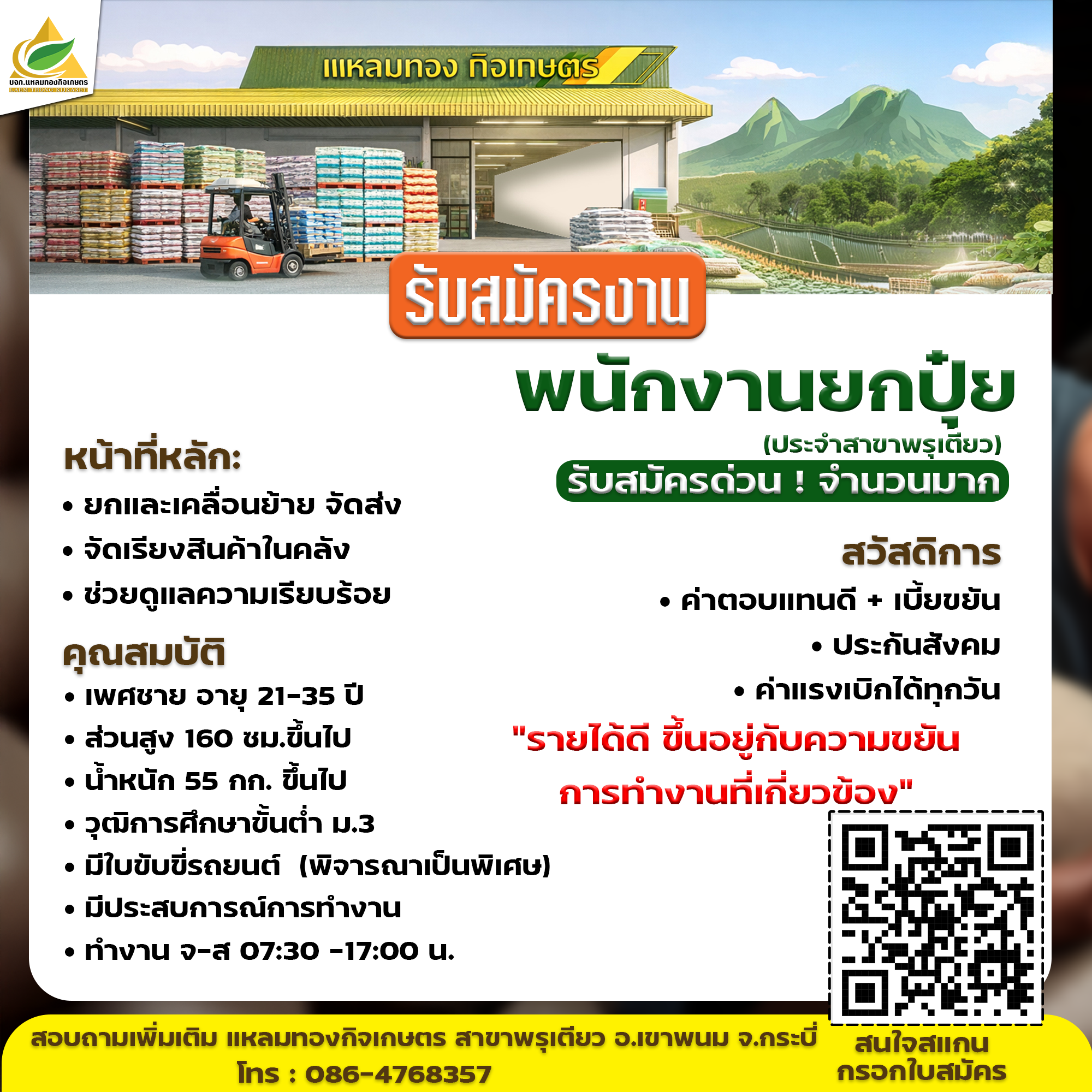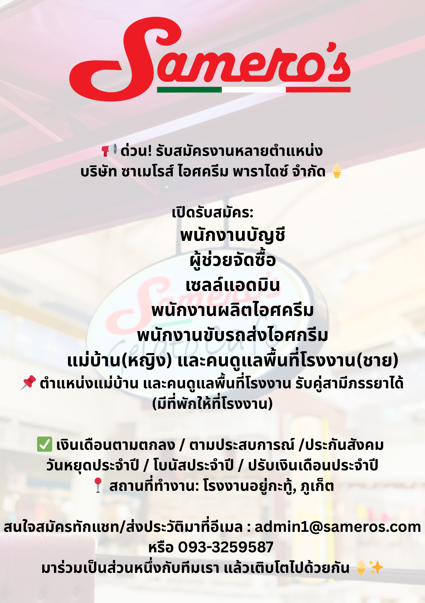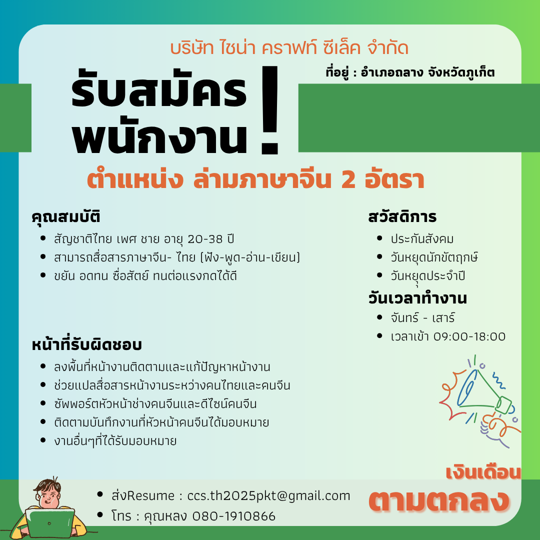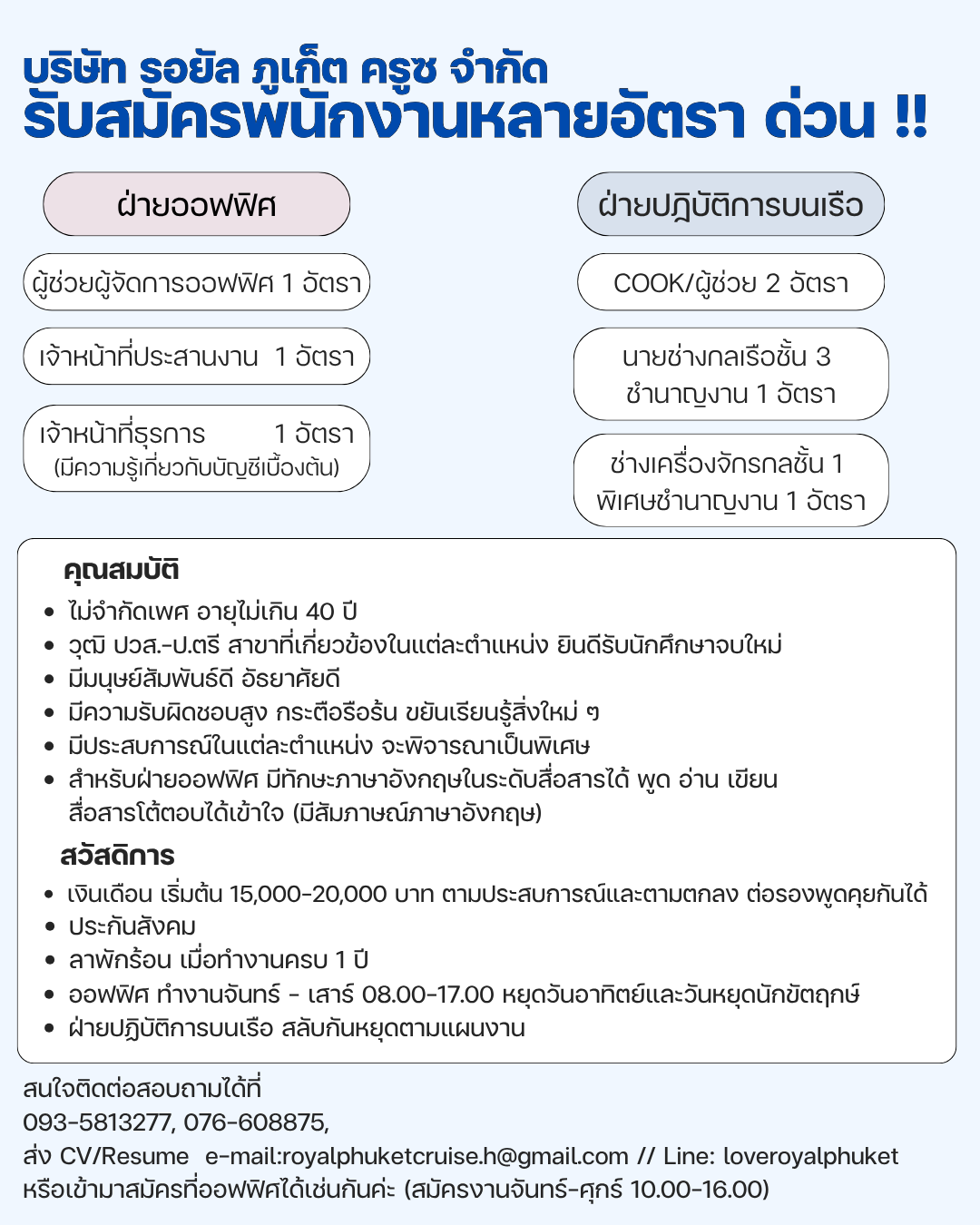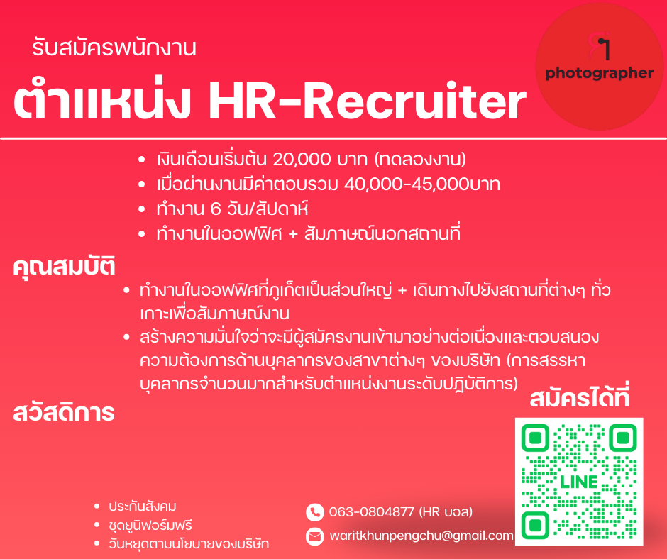 เปิดรับสมัครงานหลายอัตรา !! สนใจสมัครงานโทร 088-7660331 หรือ [email protected]