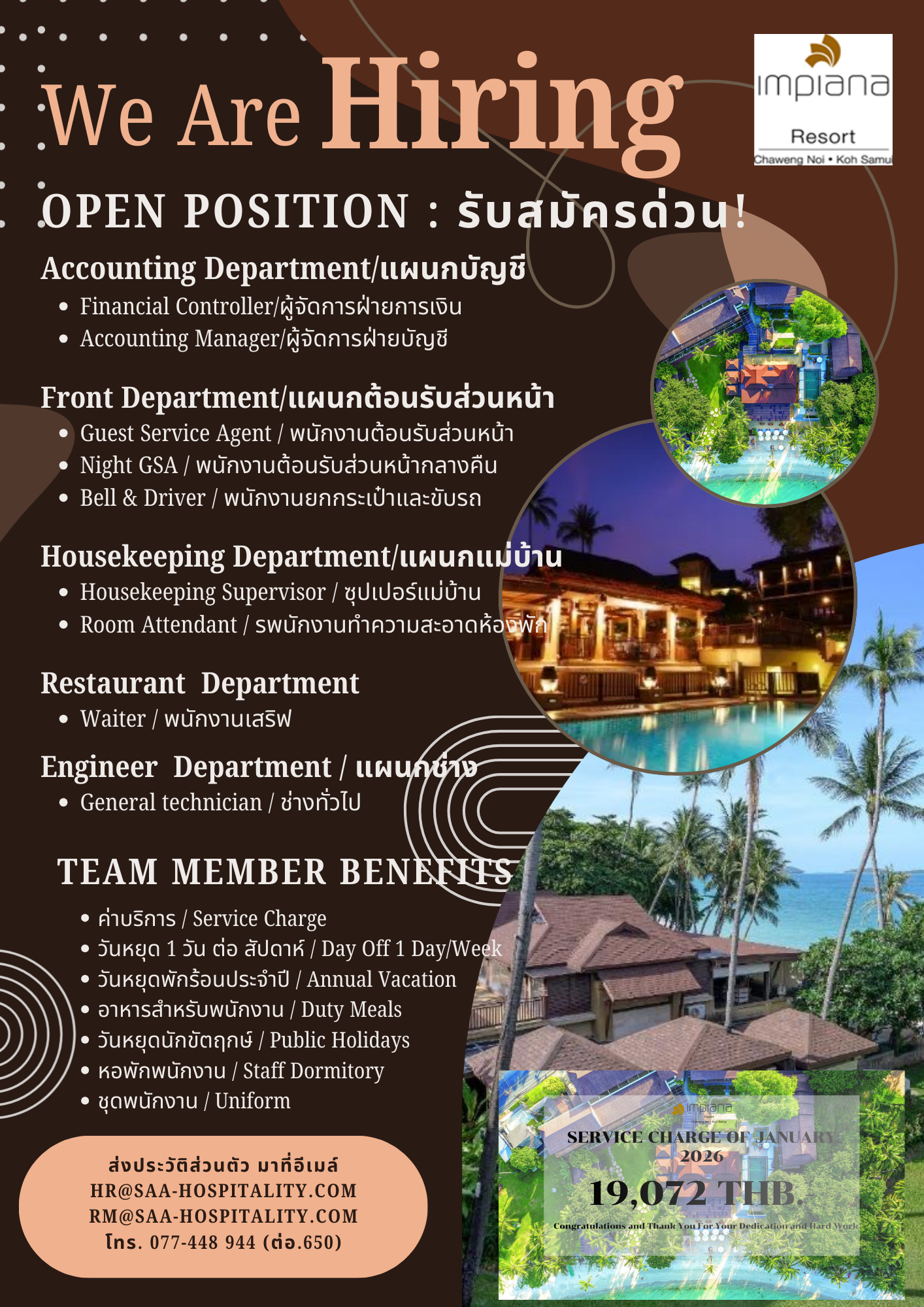 กรุณาส่งประวัติส่วนตัวมาที่ [email protected] หากท่านผ่านการพิจารณาเราจะติดต่อไปเพื่อนัดสัมภาษณ์