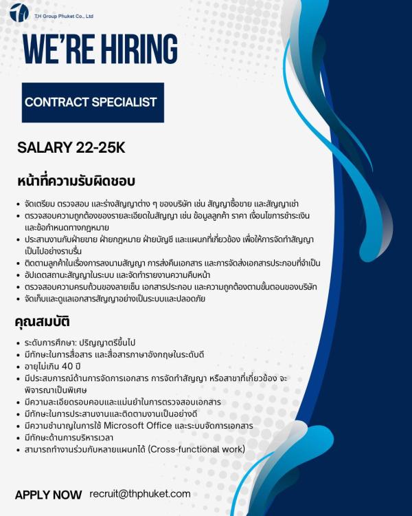 กรุณาส่งประวัติส่วนตัวมาที่ [email protected] หากท่านผ่านการพิจารณาเราจะติดต่อไปเพื่อนัดสัมภาษณ์