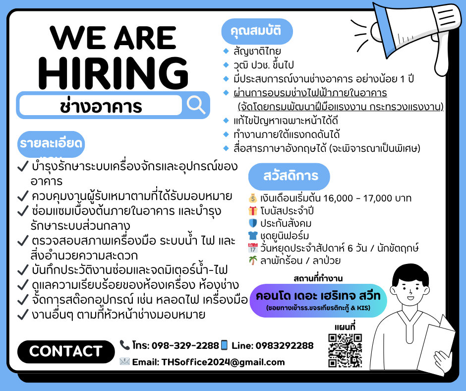 สนใจร่วมงานกับเรา สามารถส่ง Resume มาที่ [email protected] ยินดีต้อนรับทุกท่านค่ะ