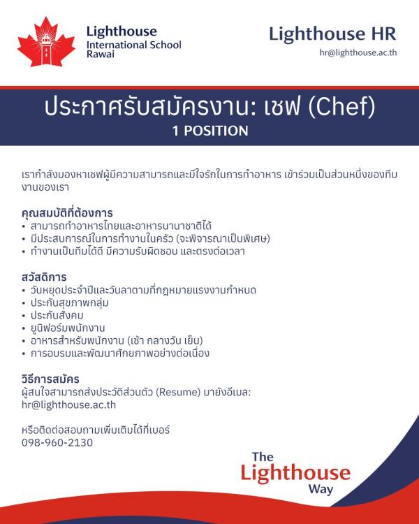 - Chef De Partie or Junior Sous Chef ครัวไทย (1) Urgent