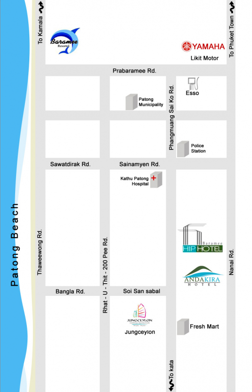 222,222/1-2 ถ.ผังเมือง(สาย ก.) ต.ป่าตอง อ.กะทู้ จ.ภูเก็ต 83150 (โรงแรมฯ ขนาด 273 ห้องพัก /อยู่เยื้อง รพ.ป่าตอง)