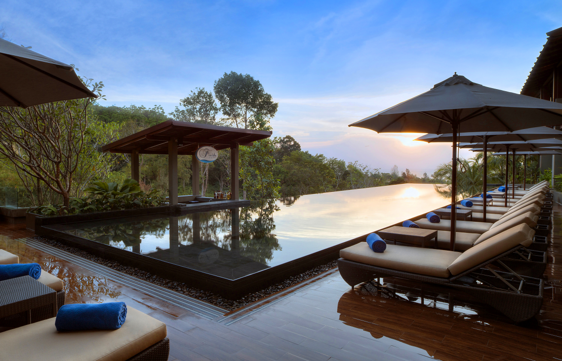 Located on a lush hilltop in southwestern Phuket overlooking two magnificent bays sits the Avista Hideaway Phuket M-Gallery. With 150 rooms, suites and villas resting amongst an inspiring, traditional Thai village setting, this world acclaimed resort flows like water over different levels of the hillside. A beautiful blend of authentic Thai design and state-of-the-art modernity, this 5-star boutique hotel is a contemporary haven niched in the rainforest
