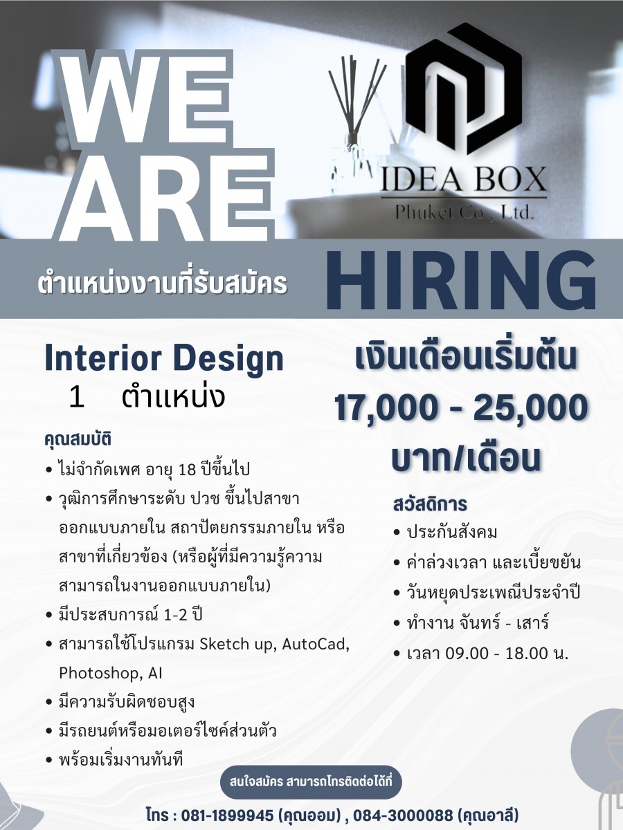 กรุณาส่งประวัติส่วนตัวมาที่ [email protected] หากท่านผ่านการพิจารณาเราจะติดต่อไปเพื่อนัดสัมภาษณ์