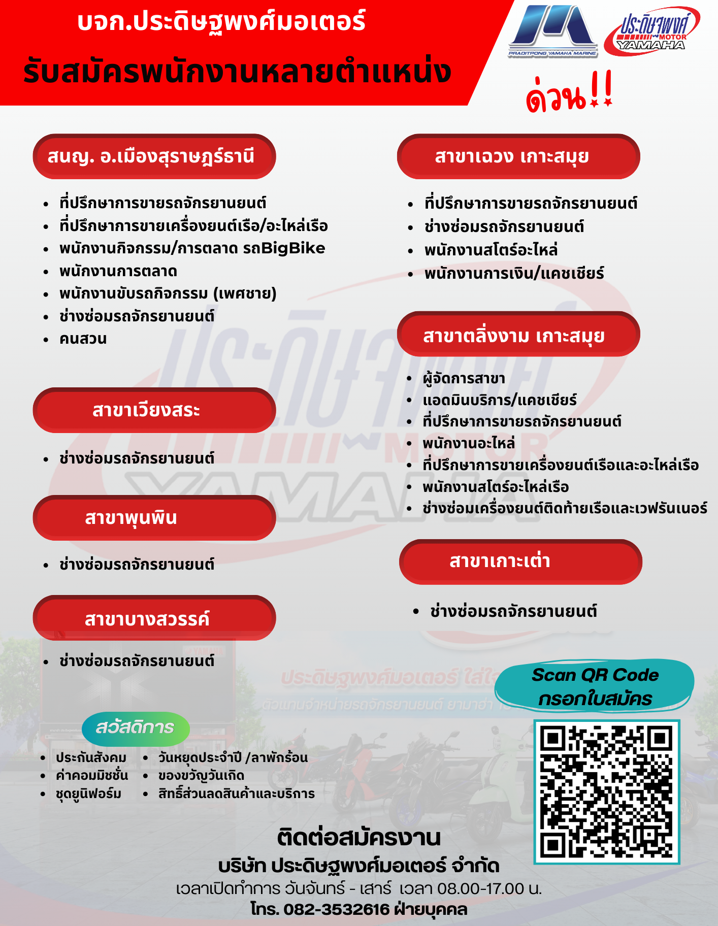 - พนักงานสโตร์อะไหล่ (สาขาเฉวง เกาะสมุย) (1) Urgent