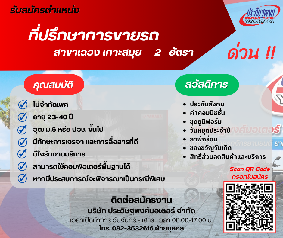 กรุณาส่งประวัติส่วนตัวมาที่ [email protected] หากท่านผ่านการพิจารณาเราจะติดต่อไปเพื่อนัดสัมภาษณ์