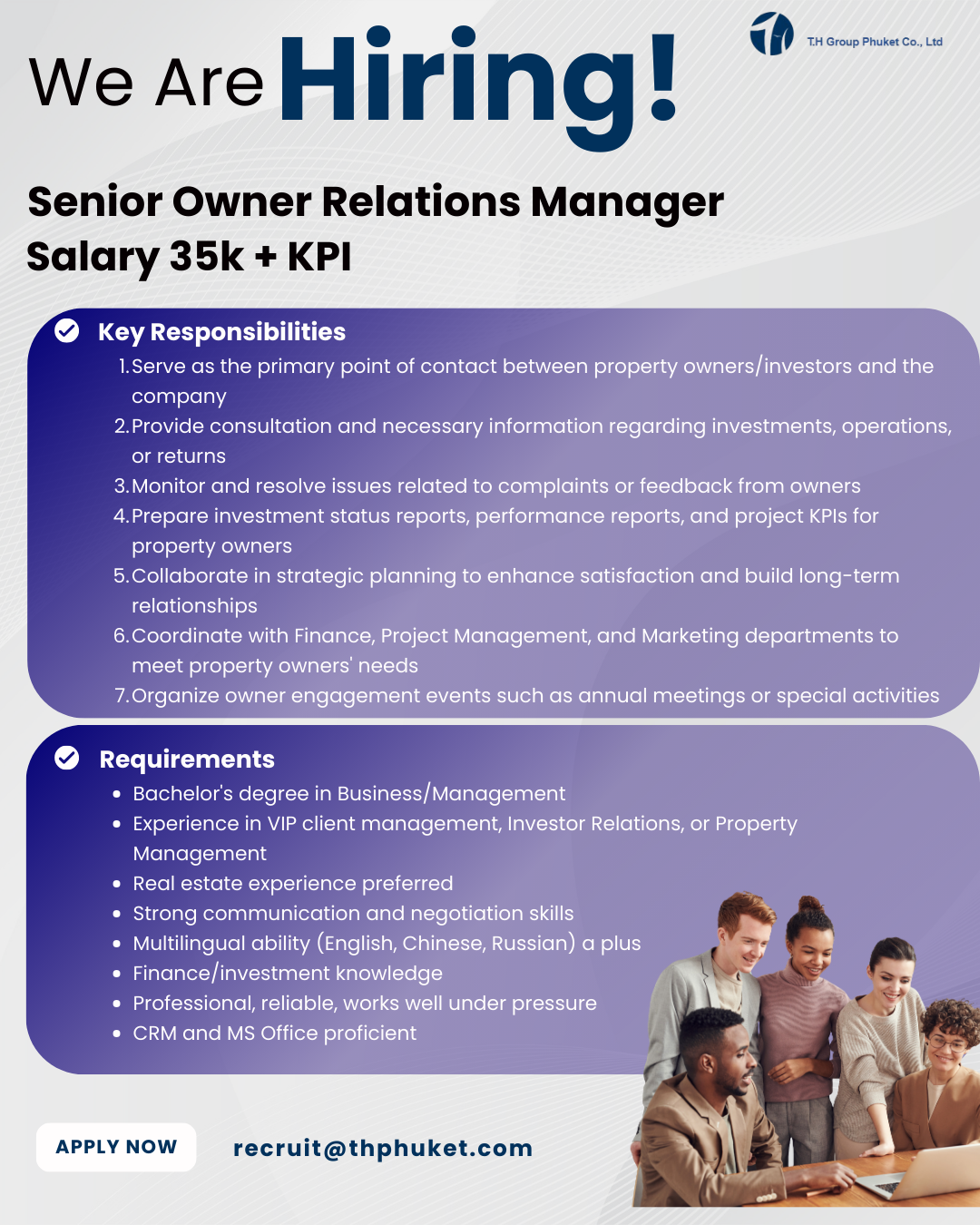 กรุณาส่งประวัติส่วนตัวมาที่ [email protected] หากท่านผ่านการพิจารณาเราจะติดต่อไปเพื่อนัดสัมภาษณ์