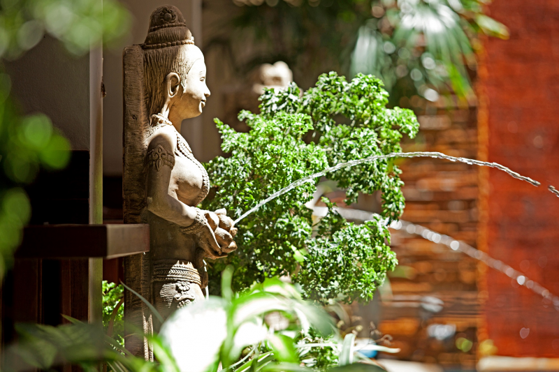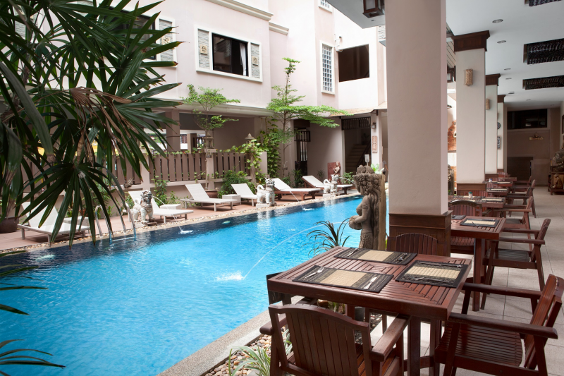 The hotel offers a rare and unforgettable opportunity to experience classic Thai accommodation in one of Patong Beach's last hideaways. The property features an elegant northern Thailand "Lanna" style décor with tropical hard wood furnishings, exquisite wood and stone carvings and traditional art pieces.