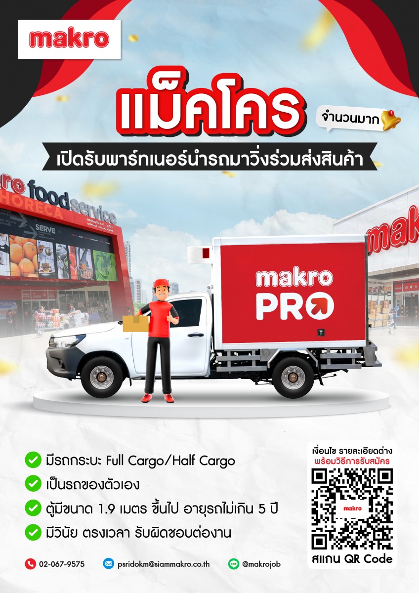 "แม็คโคร" เป็นบริษัทที่มั่นคง เปิดดำเนินการมาแล้วเป็นเวลากว่า 30 ปี และเป็นบริษัทจดทะเบียนในตลาดหลักทรัพย์แห่งประเทศไทย ต้องการบุคคลากรที่มีคุณภาพเข้าร่วมงานในตำแหน่งต่างๆ หากคุณเป็นคนหนึ่งที่มีความสามารถและต้องการพัฒนาตนเองเข้าสู่ความเป็นมืออาชีพอย่างแท้จริง โปรดดูตำแหน่งที่คุณสนใจและสมัครเข้ามาเพื่อร่วมงานกับเรา