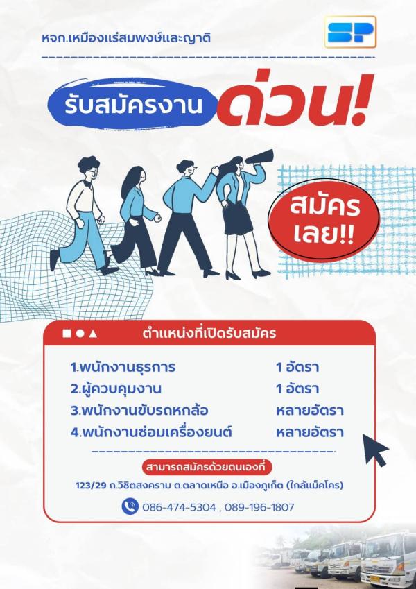 กรุณาส่งประวัติส่วนตัวมาที่ [email protected] หากท่านผ่านการพิจารณาเราจะติดต่อไปเพื่อนัดสัมภาษณ์