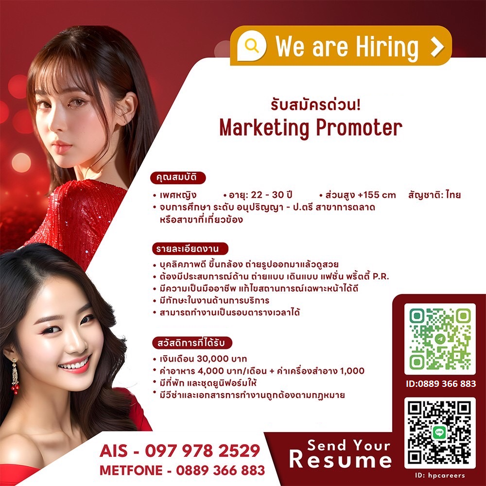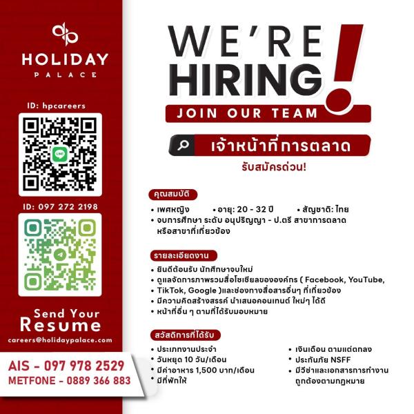 สนใจร่วมงานกับเรา สามารถส่ง Resume มาที่ [email protected] ยินดีต้อนรับทุกท่านค่ะ