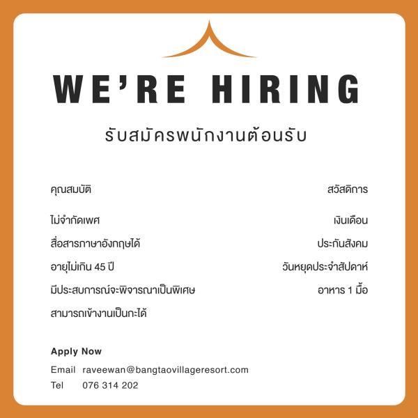 สนใจร่วมงานกับเรา สามารถส่ง Resume มาที่ [email protected] ยินดีต้อนรับทุกท่านค่ะ