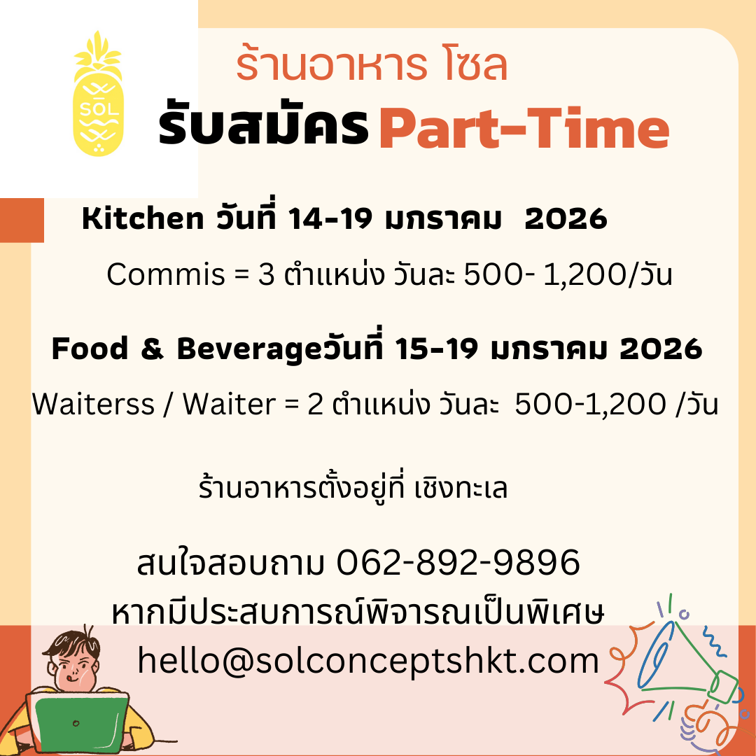 ส่งประวัติส่วนตัวพร้อมรูปถ่ายปัจจุบันเข้ามาที่ [email protected] *ยินดีรับผู้ไม่มีประสบการณ์*