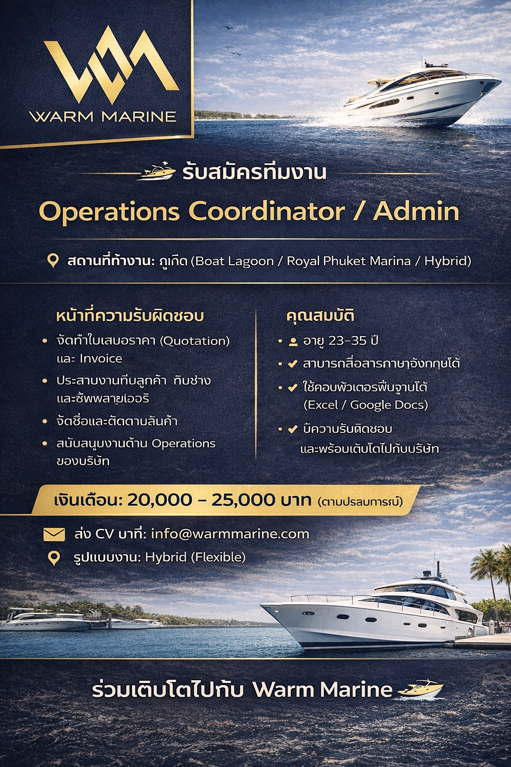 ตำแหน่ง: Operations Coordinator / w no Admin