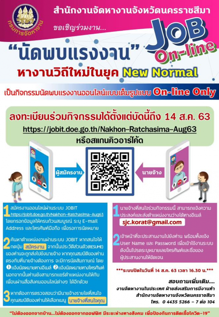 นครราชสีมา - #จัดหางานจังหวัดนครราชสีมาขอเชิญร่วมงาน "นัดพบตลาดแรงงาน" หางานวิถีใหม่ในยุค New Normal