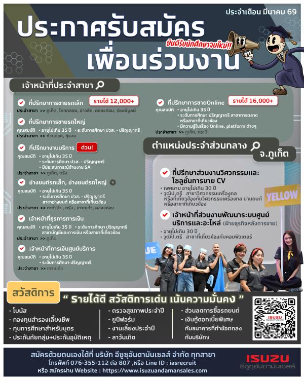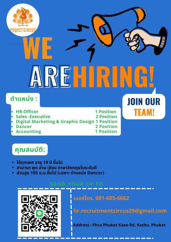 ส่งประวัติส่วนตัวพร้อมรูปถ่ายปัจจุบันเข้ามาที่ [email protected] *ยินดีรับผู้ไม่มีประสบการณ์*