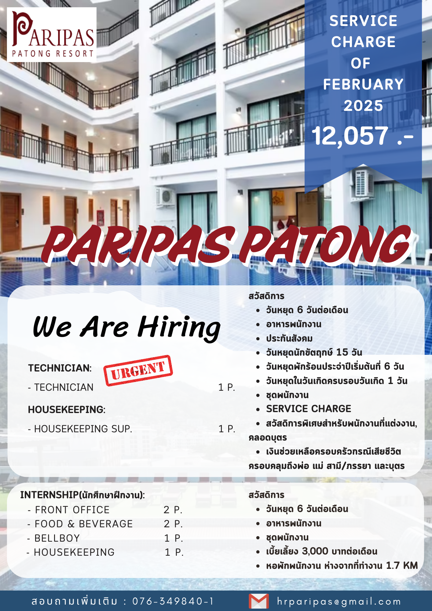 กรุณาส่งประวัติส่วนตัวมาที่ [email protected] หากท่านผ่านการพิจารณาเราจะติดต่อไปเพื่อนัดสัมภาษณ์