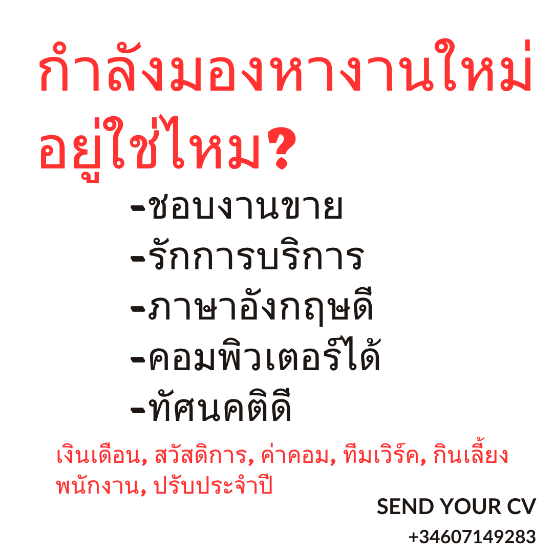 ส่งประวัติส่วนตัวพร้อมรูปถ่ายปัจจุบันเข้ามาที่ [email protected] *ยินดีรับผู้ไม่มีประสบการณ์*