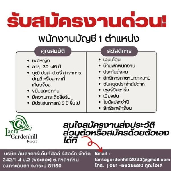 กรุณาส่งประวัติส่วนตัวมาที่ [email protected] หากท่านผ่านการพิจารณาเราจะติดต่อไปเพื่อนัดสัมภาษณ์