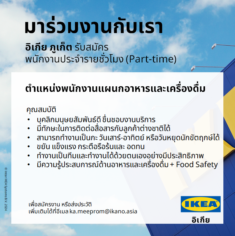 ส่งประวัติส่วนตัวพร้อมรูปถ่ายปัจจุบันเข้ามาที่ [email protected] *ยินดีรับผู้ไม่มีประสบการณ์*