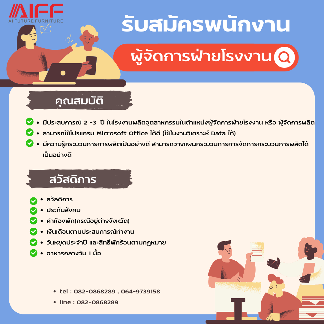 รับสมัครงาน ตำแหน่ง ผู้จัดการโรงงาน