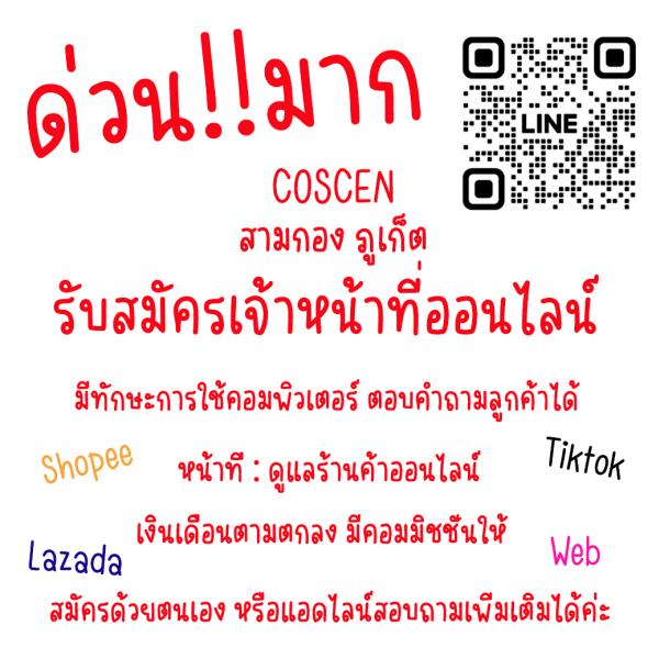 ด่วน!! สนใจสมัครได้ที่ ร้าน COSCEN สาขาสามกอง หรือแอดไลน์สอบถามรายละเอียดก่อนได้ค่ะ