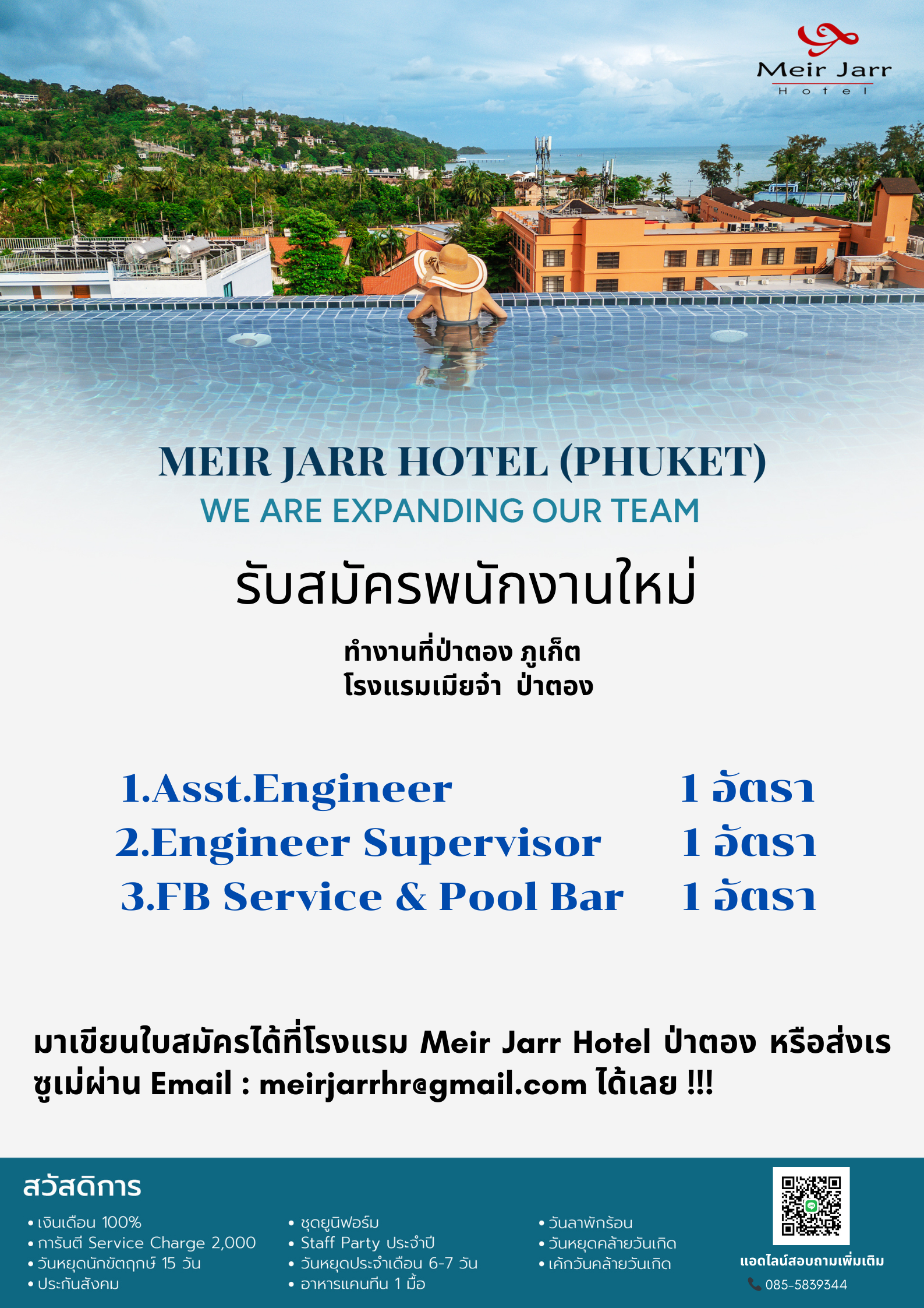 โรงแรมเมียจ๋า ป่าตอง เปิดรับสมัครพนักงานใหม่ 3 ตำแหน่งใหม่ดังนี้ครับ