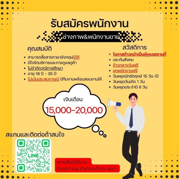 สามารถสแกนไลน์เพื่อสอบถามข้อมูลเพิ่มเติมได้เลย ตอนนี้เปิดรับพนักงาน 3 คน