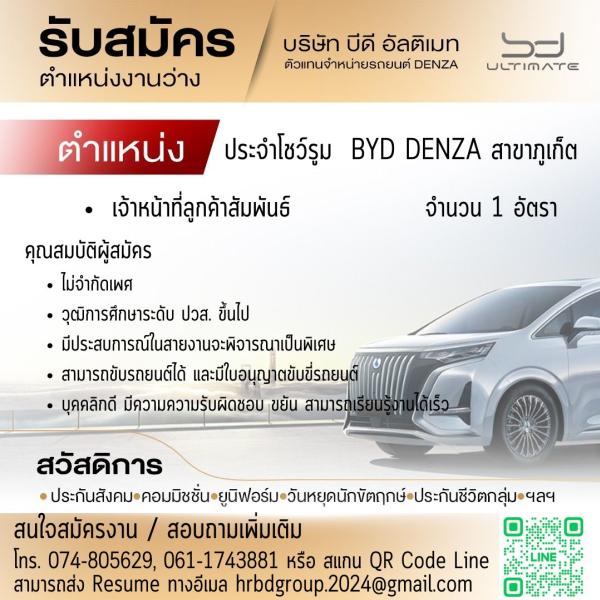 ส่งประวัติส่วนตัวพร้อมรูปถ่ายปัจจุบันเข้ามาที่ [email protected] *ยินดีรับผู้ไม่มีประสบการณ์*