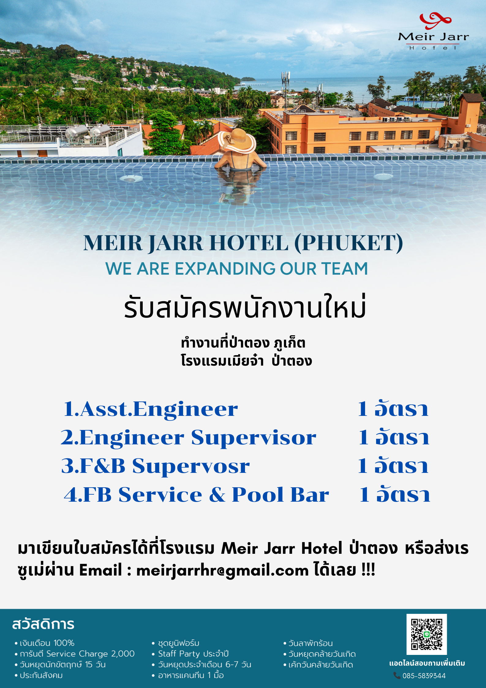 โรงแรมเมียจ๋า ป่าตอง เปิดรับสมัครพนักงานใหม่ 4 ตำแหน่งใหม่ดังนี้ครับ