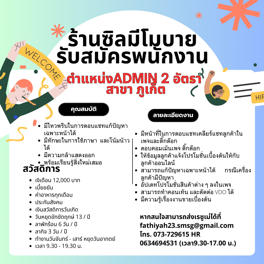 เปิดรับสมัครงานหลายอัตรา !! สนใจสมัครงานโทร 088-7660331 หรือ [email protected]