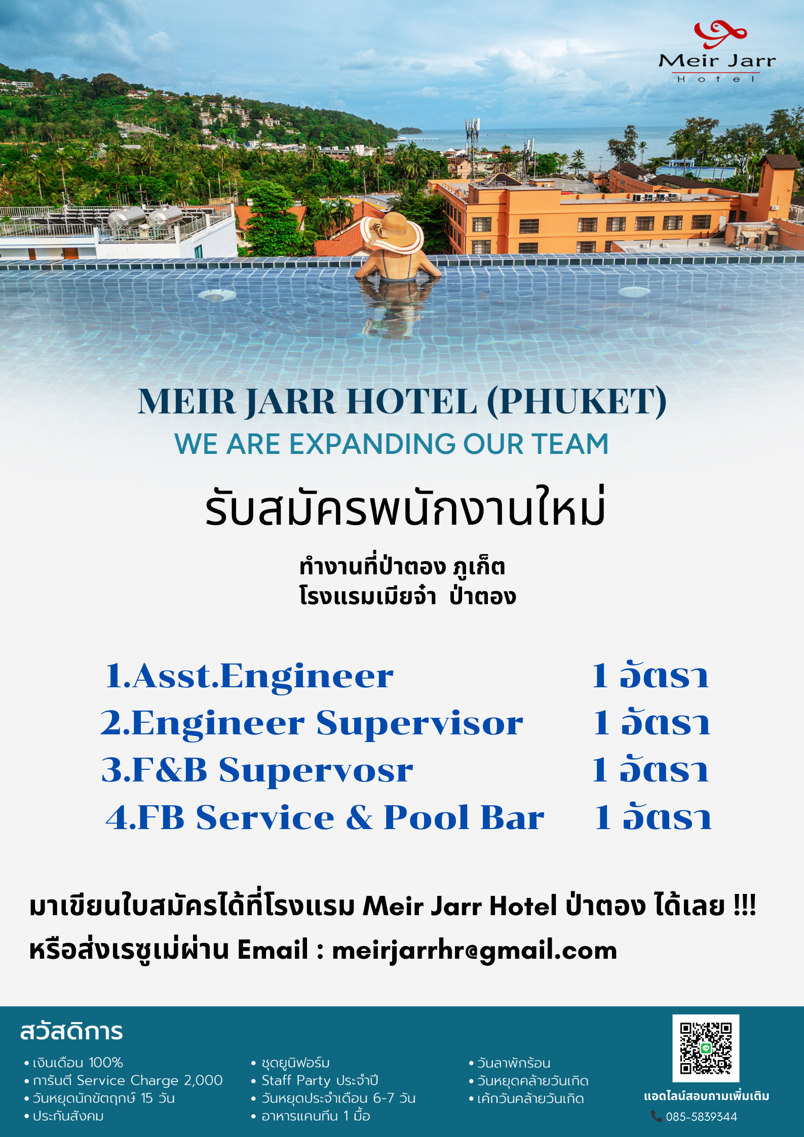 โรงแรมเมียจ๋า ป่าตอง เปิดรับสมัครพนักงานใหม่ 4 ตำแหน่งใหม่ดังนี้ครับ