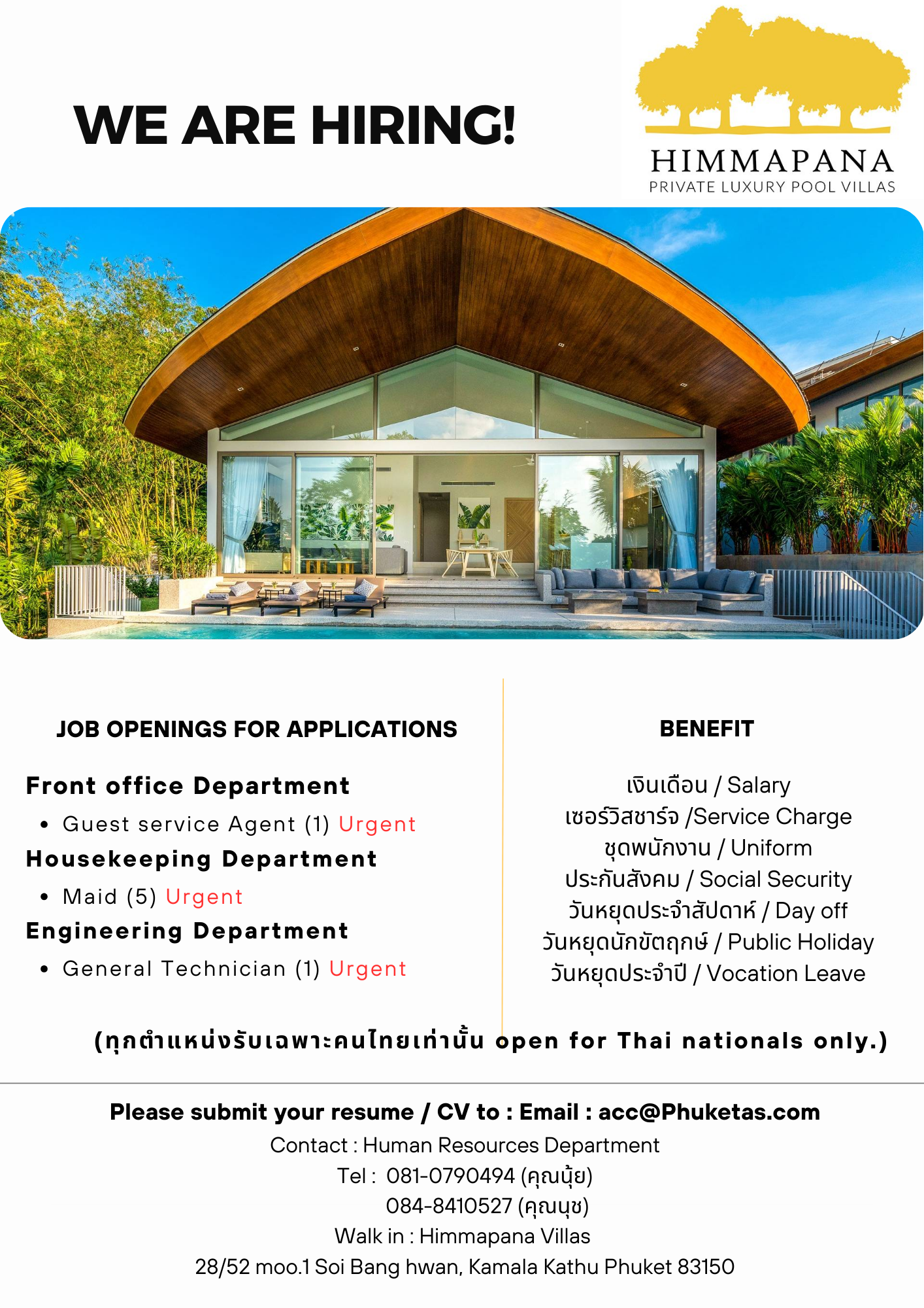 Himmapana Villas Kamala เปิดรับสมัครพนักงานประจำ