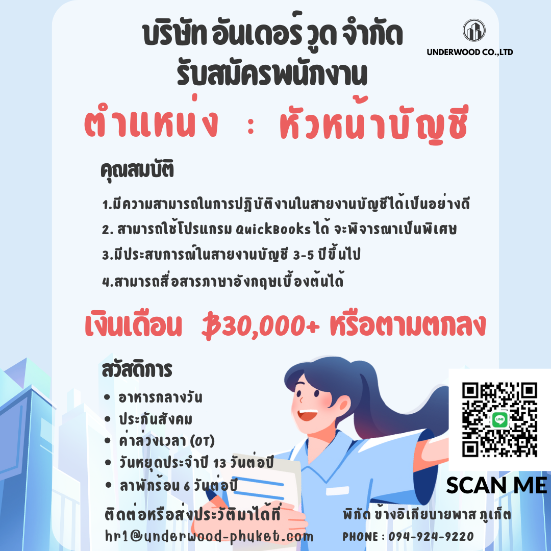 เปิดรับสมัคร หัวหน้างานบัญชีและการเงิน ด่วน !!!