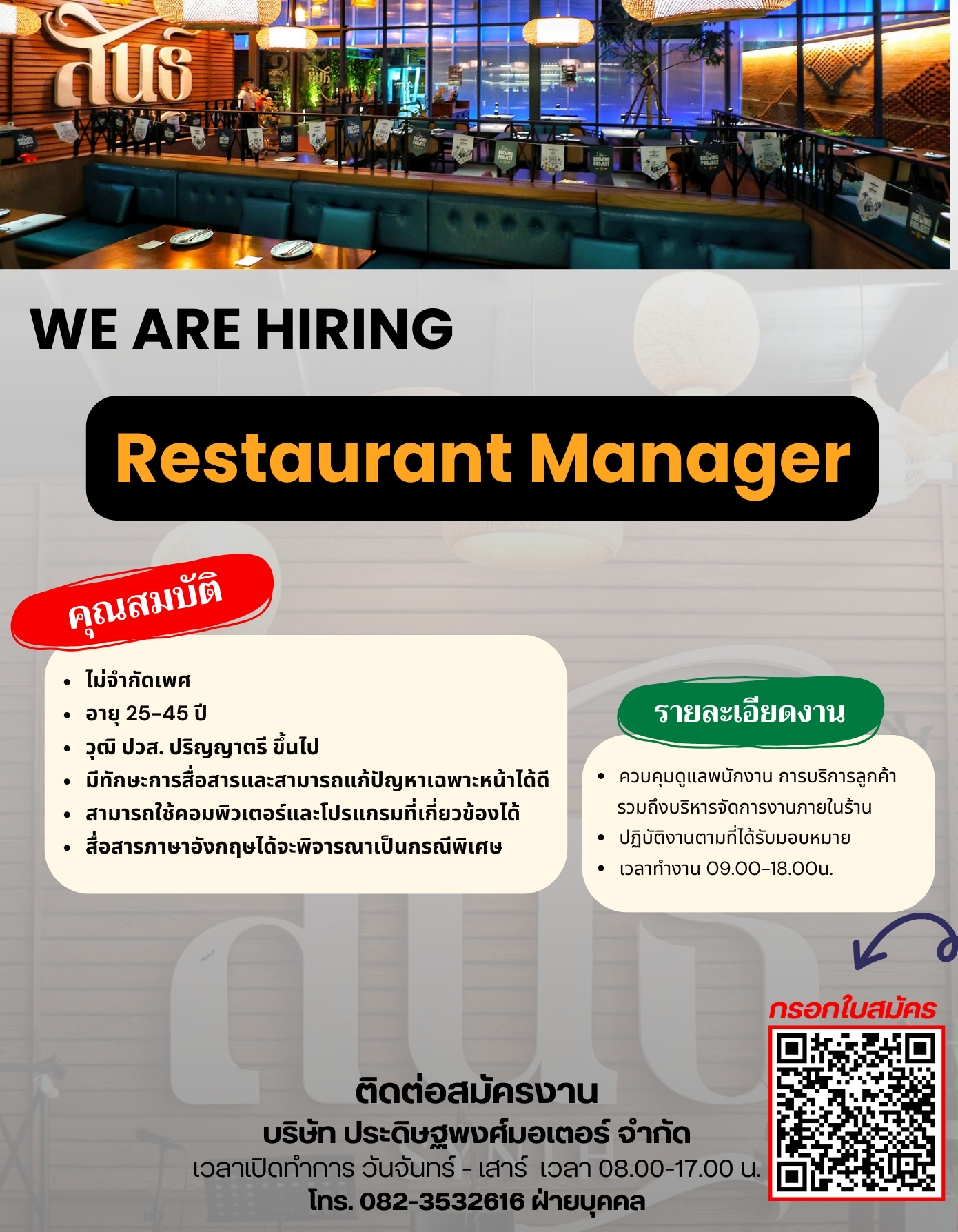 ผู้จัดการร้านอาหาร 1 อัตรา