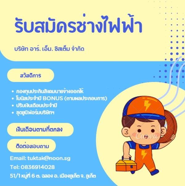 รับสมัครพนักงาน ช่างไฟ บริษัท อาร์เอ็ม ซิสเต็ม จำกัด 1 อัตรา