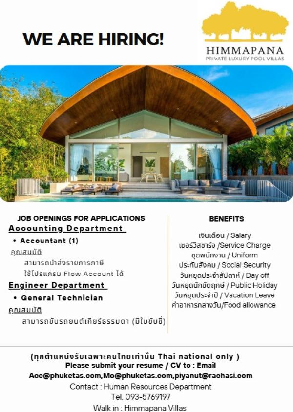 Himmapana Villas Kamala เปิดรับสมัครพนักงานประจำ